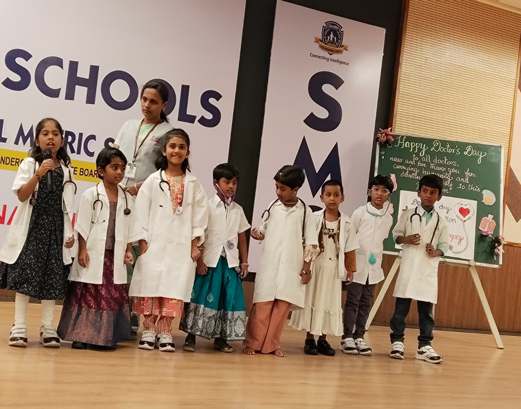 Our Optimistic children of KG-V category celebrated assembly on Doctor's Day in order to show their gratitude and respect towards Doctors. They showcased various programs like Role play, Dance, Song, Speech, poem recitation and so on. The program was heart touching, by the performances of our children which exposed the suffering of Doctors who struggle to save the life of each and every person. The assembly also was a awareness program to be healthy and happy always. Our Compassionate children also visited the nearby clinics and wished them "Happy Doctor's Day" with gifts and flowers.