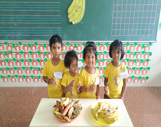 The banana peeling activity is a fun and engaging way to develop fine motor skills, hand-eye coordination, and independence in kindergarten kids. This activity also promotes healthy eating habits and introduces kids to a nutritious fruit and explores the texture and smell of bananas during the peeling process.