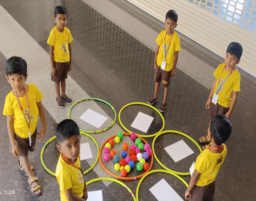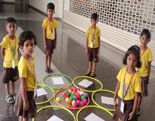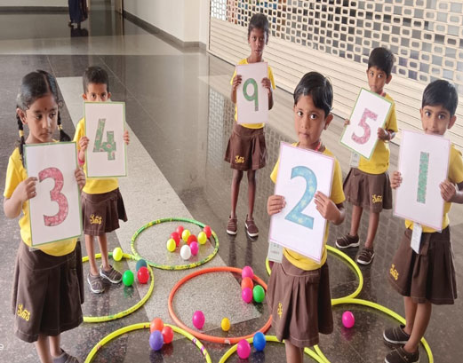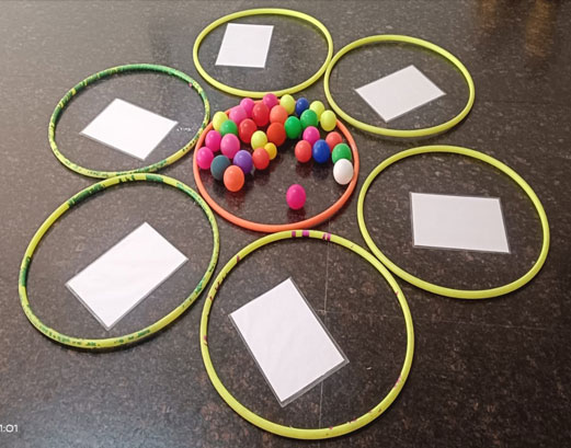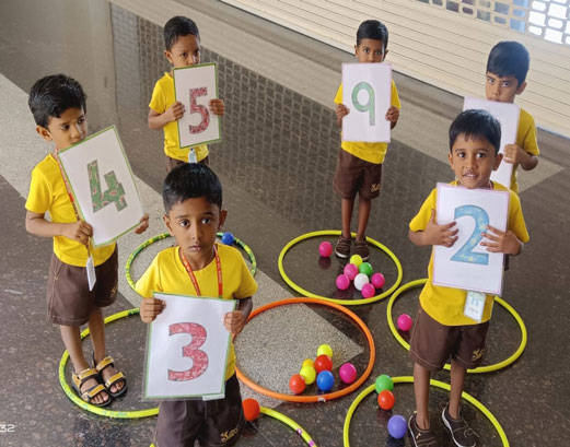 The Upper kindergarten kids arrange the flashcards and have each Stand on a card with a number.
