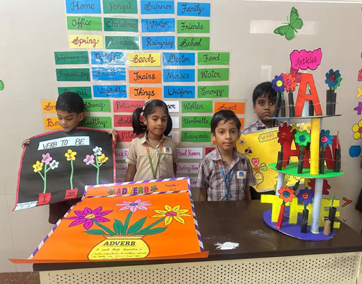 ✨ Language Learning: Students beautifully presented vernacular concepts in Tamil and Hindi, demonstrating strong foundational knowledge in multiple languages through creative posters and insightful drawings.