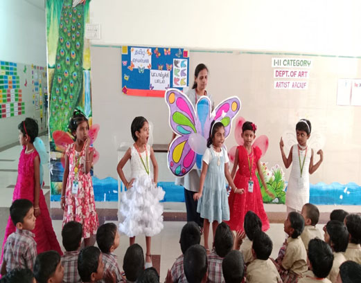 வண்ணங்களின் காட்சி: வண்ணத்துப்பூச்சிகள் ஏன் மிகவும் வர்ணமயமாக உள்ளன என்பதைப் பற்றி விவாதித்தோம். அவை தங்கள் இறகுகளில் உள்ள பல்வேறு வண்ணங்கள் மூலம் எப்படிப் பூக்களை ஈர்க்கின்றன என்பதைக் குழந்தைகள் தெரிந்துகொண்டனர்.