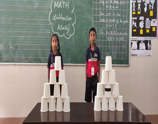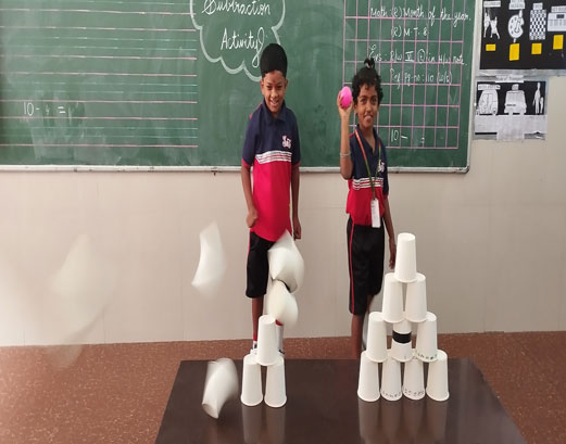 ➖ "The children enjoyed the activity of throwing the ball at the paper cups and counting the remaining cups to find the answer."