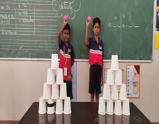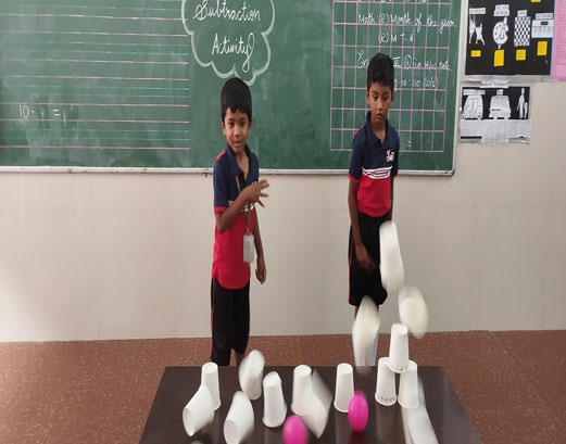 ➖ "The children enjoyed the activity where they threw the ball at the paper cups and counted the ones left standing to get the answer."