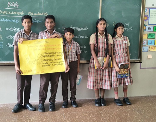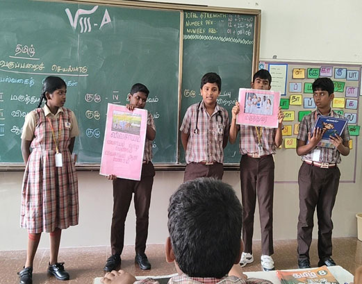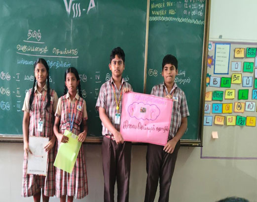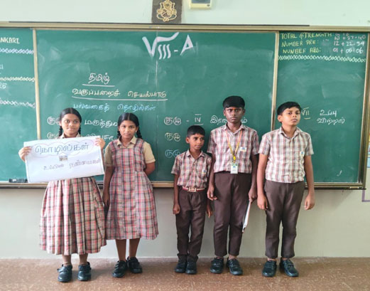 எட்டாம் வகுப்பு தமிழ்ப் பாடம் தொடர்பாக, "பல்வகைத் தொழில்கள்" குறித்த குழுச் செயல்பாடு கொடுக்கப்பட்டது. இதனை மாணவர்கள்மிகச் சிறப்பாகச் செய்து முடித்தனர்.
