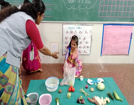 • காய்கறிகளின் வண்ணங்கள் அறிதல்.