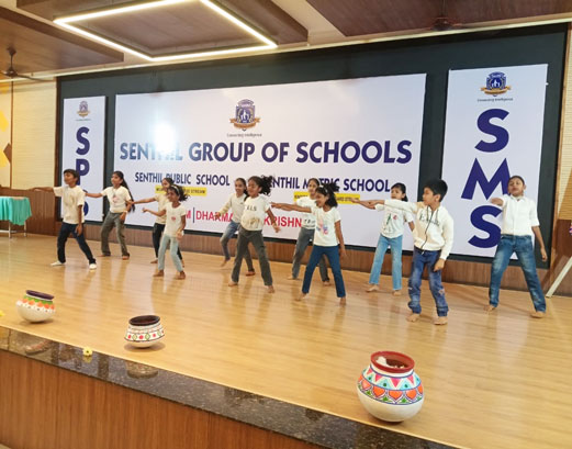 Pongal was celebrated with great joy and traditional fervour in our school by students of Kindergarten–V category. The programme began with the lighting of the lamp by our respected Principal, followed by an inspiring speech highlighting the significance of Pongal and our rich cultural heritage. Students enthusiastically showcased their talents through melodious songs, graceful classical dances, and energetic folk dance performances. Best Parent Awards were presented to parents for their constant support and cooperation. Colourful decorations, traditional attire, and cultural presentations added vibrancy to the celebration. The event fostered unity, cultural awareness, and joy among students, teachers, and parents. The Pongal programme concluded with heartfelt appreciation and a sense of pride in our traditions.