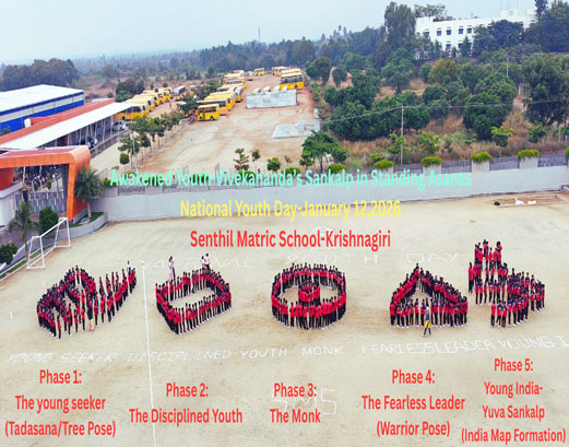 Swami Vivekananda inspired the youth to dream big, work hard, and serve society. By practicing yoga and following his ideals, we take a sankalp to become responsible, confident, and value-based citizens of India.