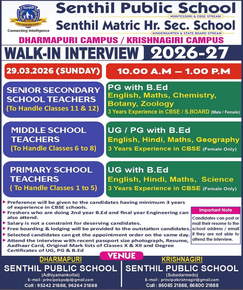 If you are interested in pursuing an opportunity to work at the Senthil Group of Schools, please apply.