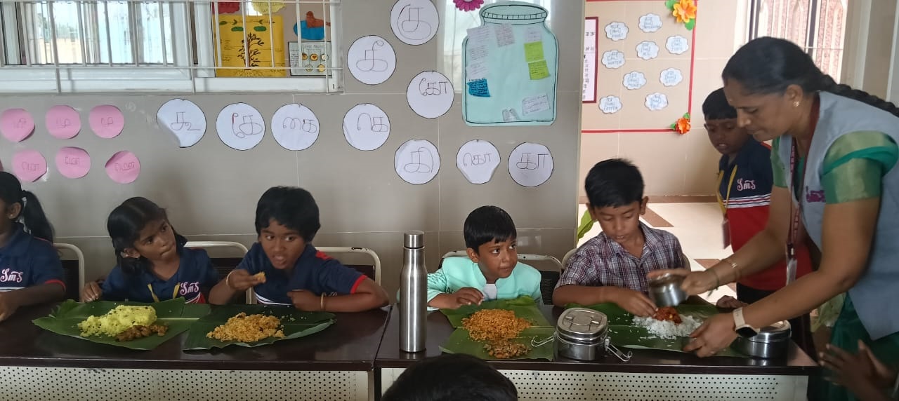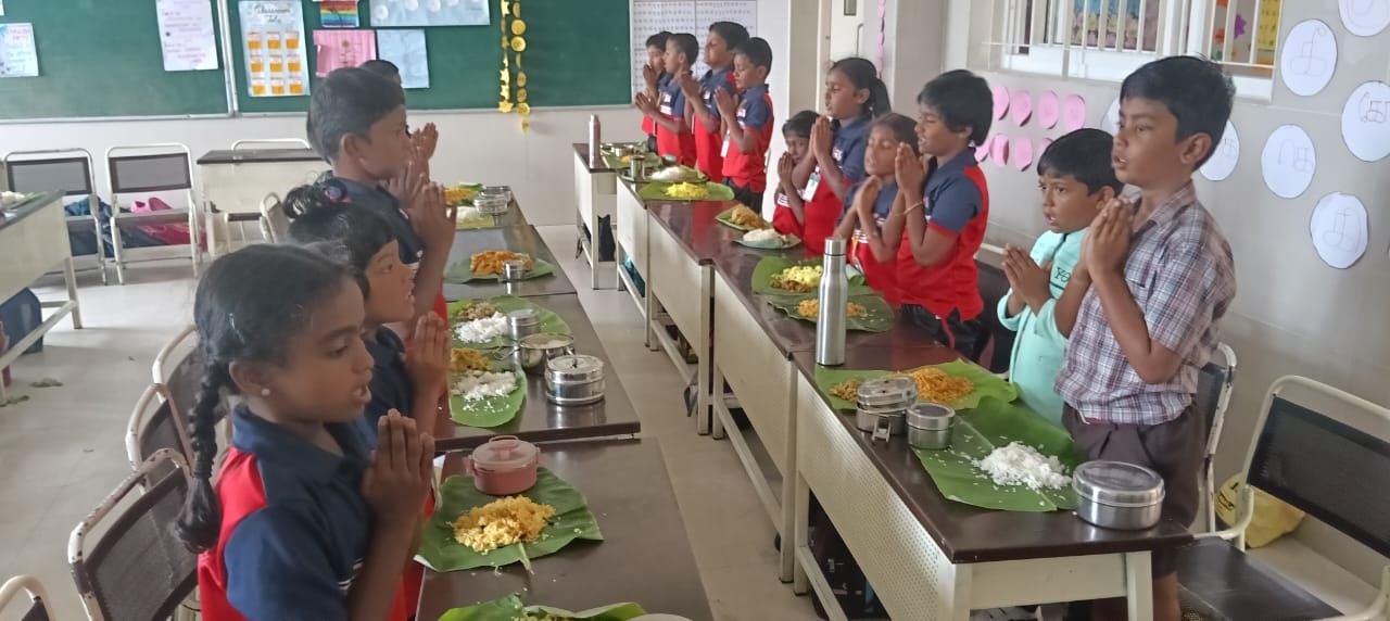 “வாழை இலையின் முக்கியத்துவம்” “தமிழரின் பாரம்பரிய உணவு முறையின் முக்கியத்துவத்தை பற்றி குழந்தைகள் அறிந்து கொள்ளுதல்.” இன்று ஜூன் மாதம் 30 ஆம் நாள், திங்கட்கிழமை மூன்றாம் வகுப்பு 'அ' பிரிவில் படிக்கும் மாணவர்கள், வாழை இலையின் பயன்கள் மற்றும் சிறப்புகள் பற்றி; எடுத்துரைத்தனர். வாழை இலையில் இன்று மதியம் உணவருந்தினர். மேலும் வாழை இலையின் பயன்கள் அதில் எவ்வாறு உண்ண வேண்டும், நாம் பாரம்பரியமாக, ஏன் வாழை இலையில் உணவு அருந்த வேண்டும் என்ற விவரங்களை அந்த பிரிவில் உள்ள தமிழ் ஆசிரியை திருமதி. செந்தாமரை அவர்கள், அனைத்து குழந்தைகளுக்கும் எடுத்துரைத்தார். குழந்தைகளும், வாழை இலையின் மற்றும் மரத்தின் பயன்களையும், அதன் சிறப்புகளையும், உன்னிப்பாக கவனித்து, வாழை இலையில் மதிய உணவை உண்டு மகிழ்ந்தனர். இந்நிகழ்வு வகுப்பில் மிகச்சிறந்த நேர்மறை எண்ணத்தை உருவாக்கி குழந்தைகளுக்கு கற்றல் திறனையும் வளர்த்தது. நன்றி!