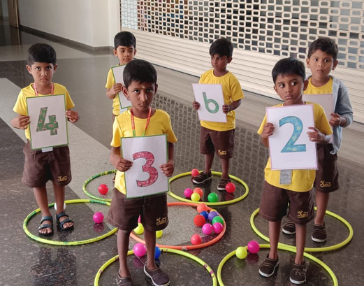 The Upper kindergarten kids arrange the flashcards and have each Stand on a card with a number.