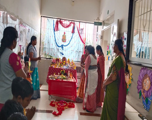 Students and teachers came together to participate in the pooja and celebrations, showcasing grand pomp and show. Our Principal and Academic Coordinators joined in, blessing the children and adding to the festivities.